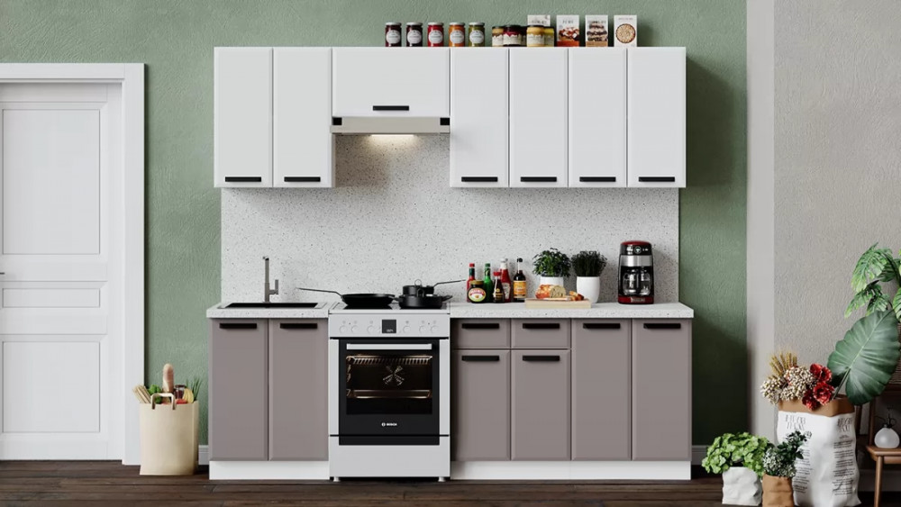 Кухонный гарнитур «Тиана» длиной 240 см Белый, Белый супермат, Мокко супермат в Тюмени