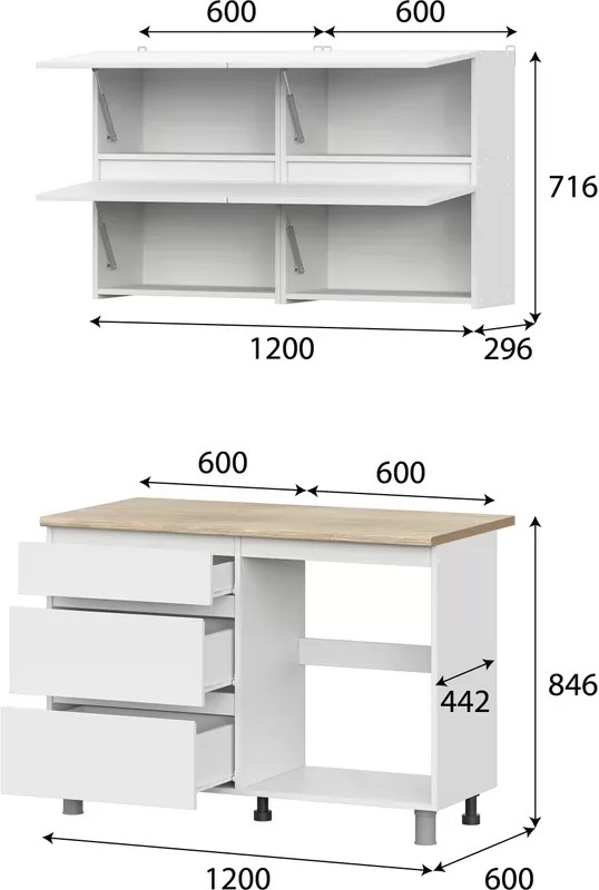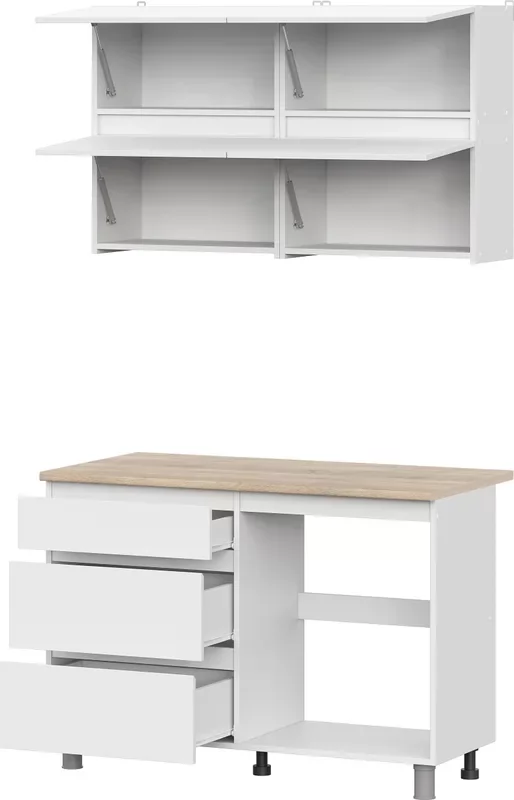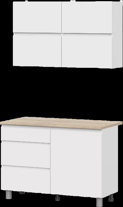 Размеры (Ш Г В)120x60x214 смТолщина столешницы, мм26Состав комплектаКомплект фурнитуры / Модуль напольный 120 см / Модуль навесной 60 см - 2 шт. / Столешница 120 смСистема храненияЯщики / ДверкиЦвет фасадаБелыйЦвет корпусаБелыйЦвет столешницыСветлое деревоНазвание цветаБелый текстурный, дуб сонома