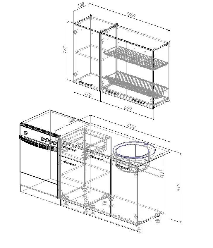 | Размер (ВхШхГ) | 850х1200х600 мм |