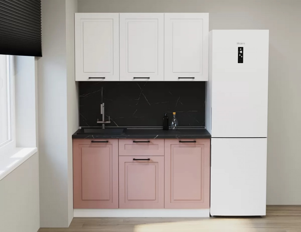Кухонный прямой гарнитур Аликанте арт.11, 1500 мм, Шарли Pink/Шарли белый в Тюмени