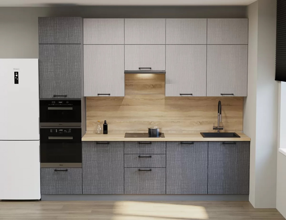 Кухонный прямой гарнитур Аликанте арт.30, 3000 мм, Чесура светлая/Чесура тёмная в Тюмени