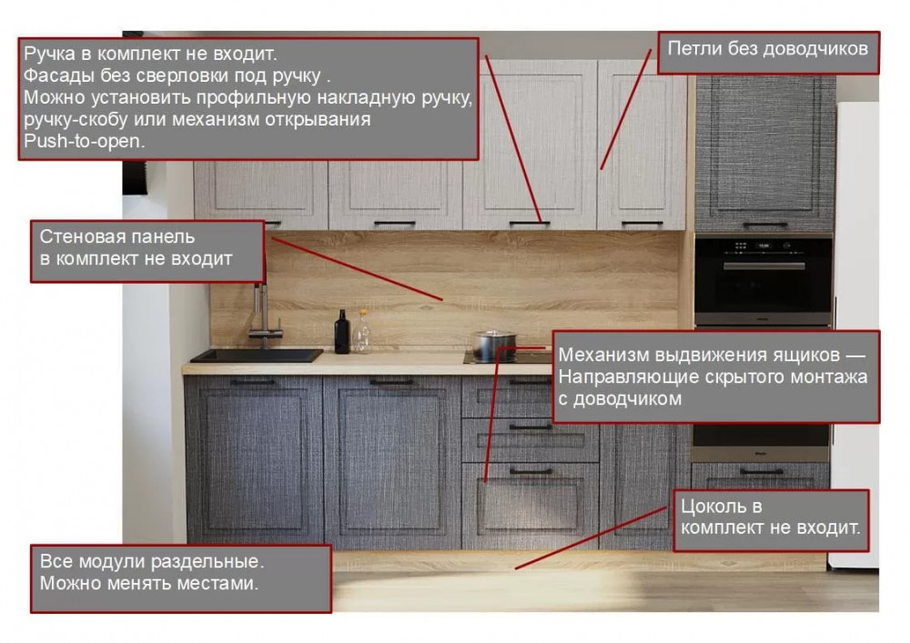 Ориентация изделия: ПрямаяГлубина: 60 смШирина: 280 смВысота: 214 смМатериал фасада: МДФМатериал корпуса: ЛДСПЦвет фасада: Чесура светлая/Чесура тёмнаяФрезеровка: ЕстьФрезеровка (Рисунок): АликантеСтекла: НетЦвет корпуса: дуб сономаЦвет столешницы: Дуб сонома светлыйНаправляющие ящиков: Направляющие скрытого монтажа с доводчикомСтиль: Современный