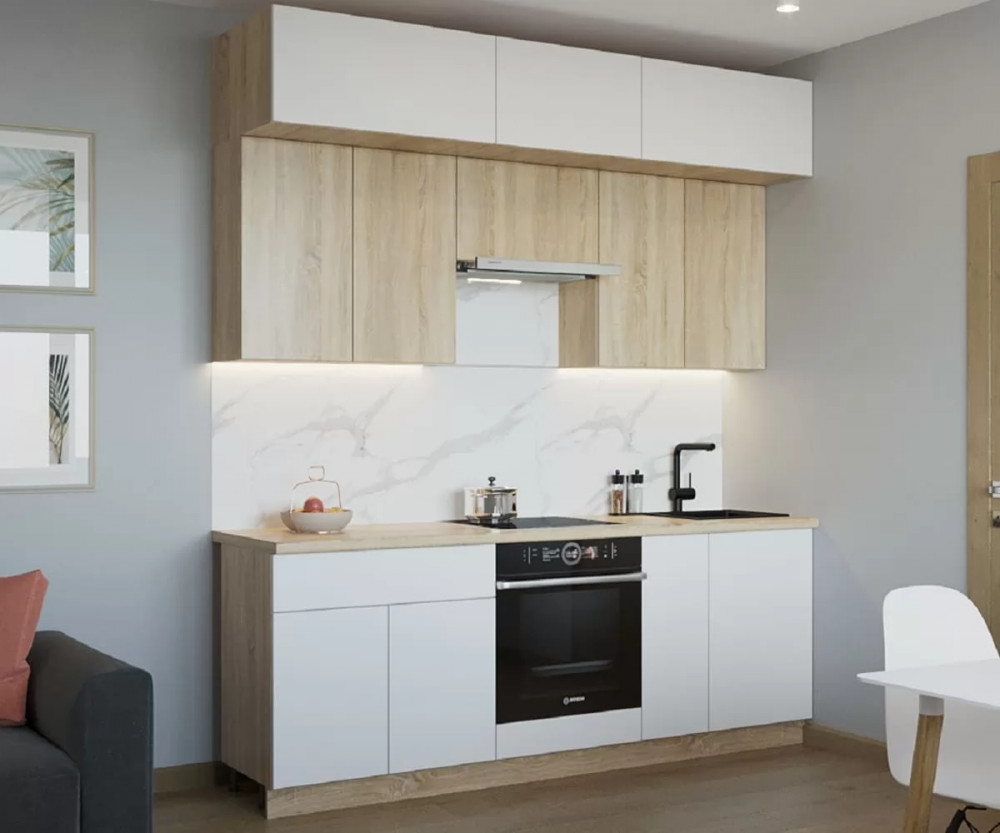 Кухонный прямой гарнитур арт.1, 2200 мм, Тальк/Дуб сонома в Тюмени