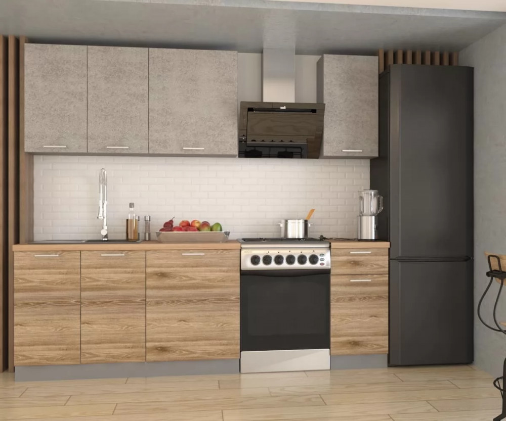 Кухонный прямой гарнитур арт.10 ЛОФТ, 1800 мм, Рустик натур/Бетон светлый в Тюмени