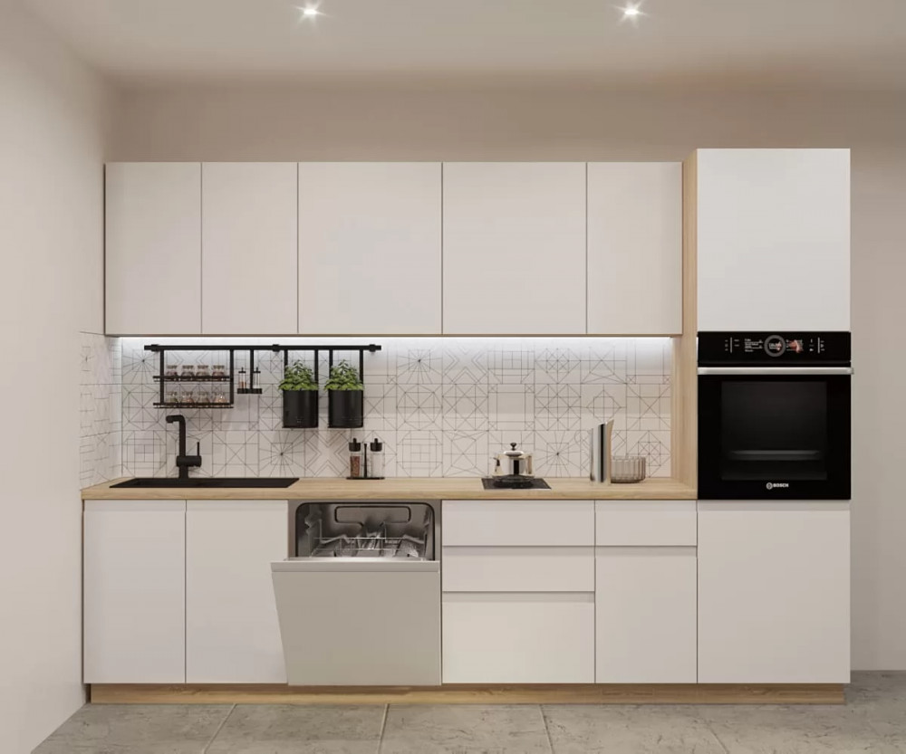 Кухонный прямой гарнитур арт.11, 3000 мм, Лайн/Тальк в Тюмени