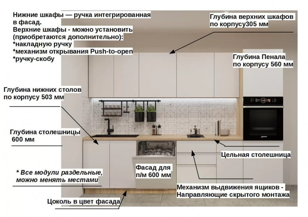 Первое и главное, что нужно знать о кухнях без ручек — варианты подходят ультрасовременным стилям. В интерьере модерн, хай-тек или минимализм такие кухонные гарнитуры будут выглядеть лучше всего.