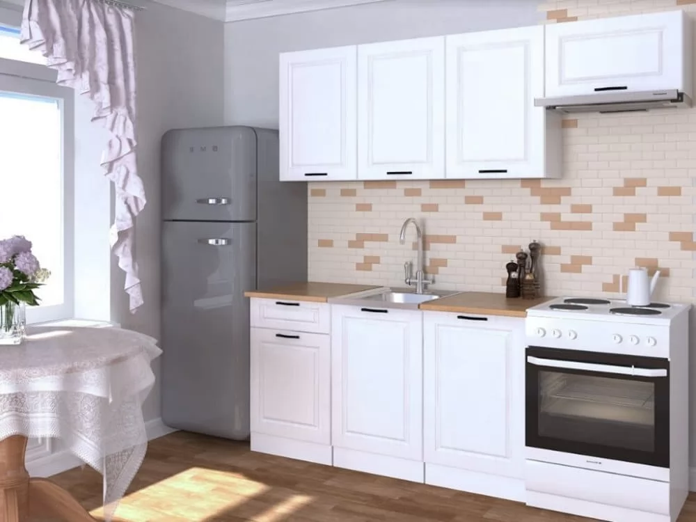 Кухонный прямой гарнитур арт.13, 2100 мм, Белый/Вегас в Тюмени