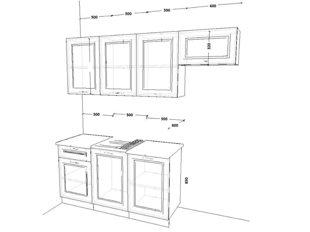 Кухонная мойка, стеновая панель, посудосушитель, цоколь, планки для столешницы в комплект не входят.