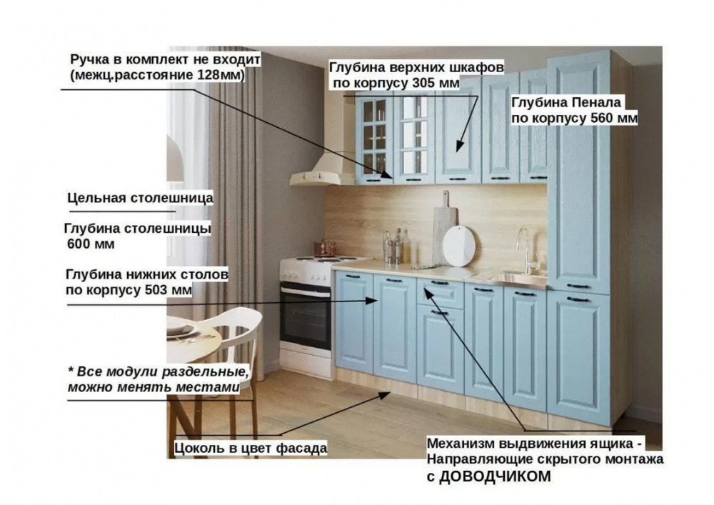 Кухонный прямой гарнитур арт.16, 2200 мм, Роял Вуд Голубой/Вегас в Тюмени