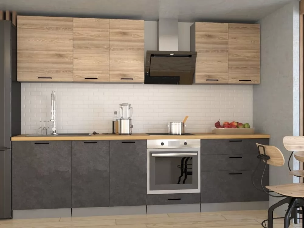 Кухонный прямой гарнитур арт.17 ЛОФТ, 2800 мм, Рустик натур/Бетон темный/Дуб Бунратти в Тюмени