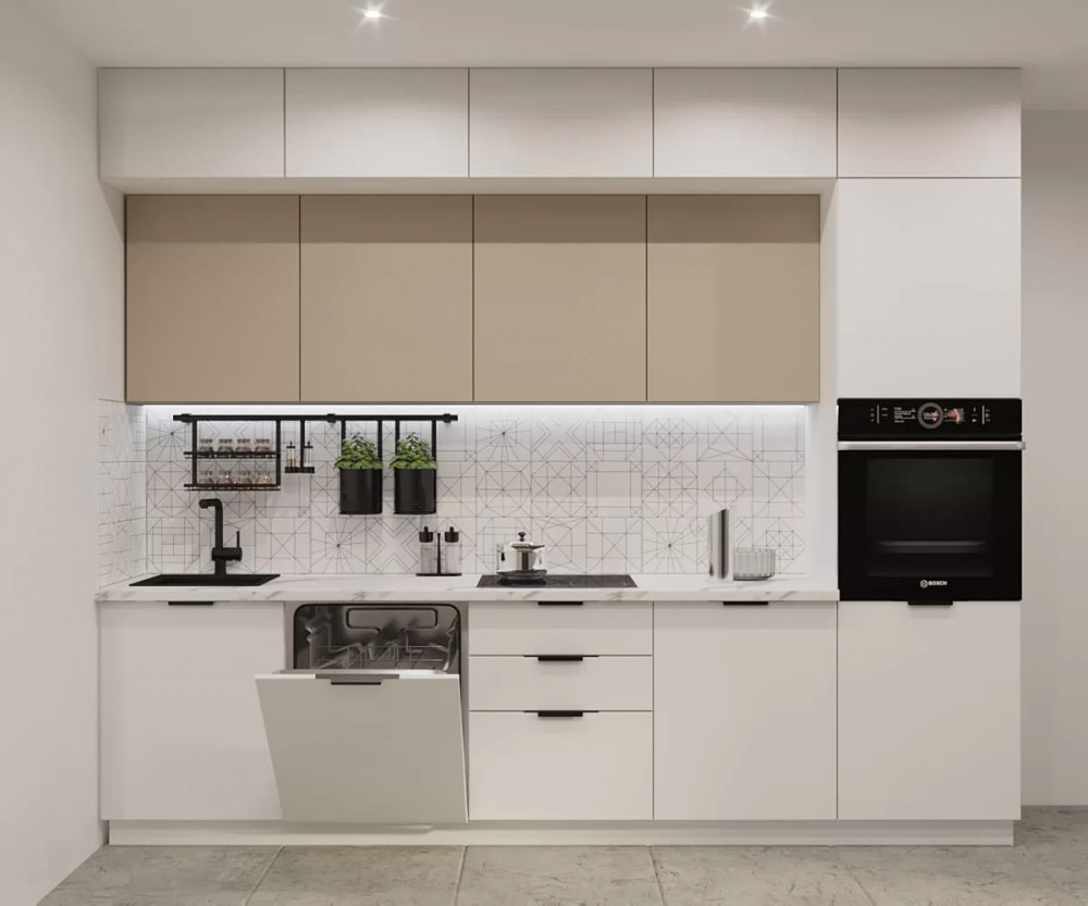 Кухонный прямой гарнитур арт.21, 3000 мм, Фаска/Тальк/Пикрит в Тюмени