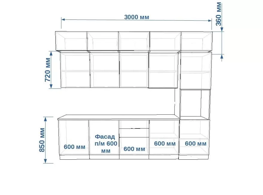 | Ширина гарнитура | 3000 мм |