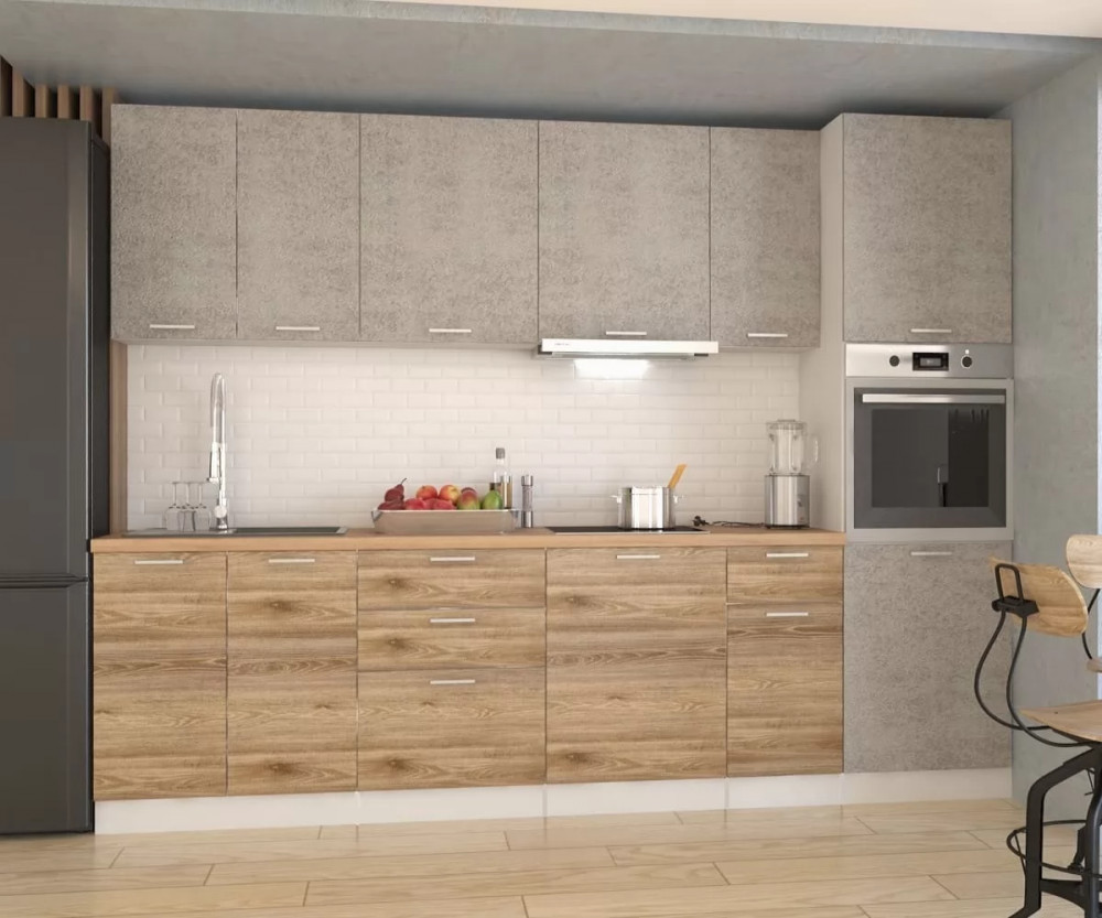 Кухонный прямой гарнитур арт.3 ЛОФТ, 3000 мм, Рустик натур/Бетон светлый в Тюмени