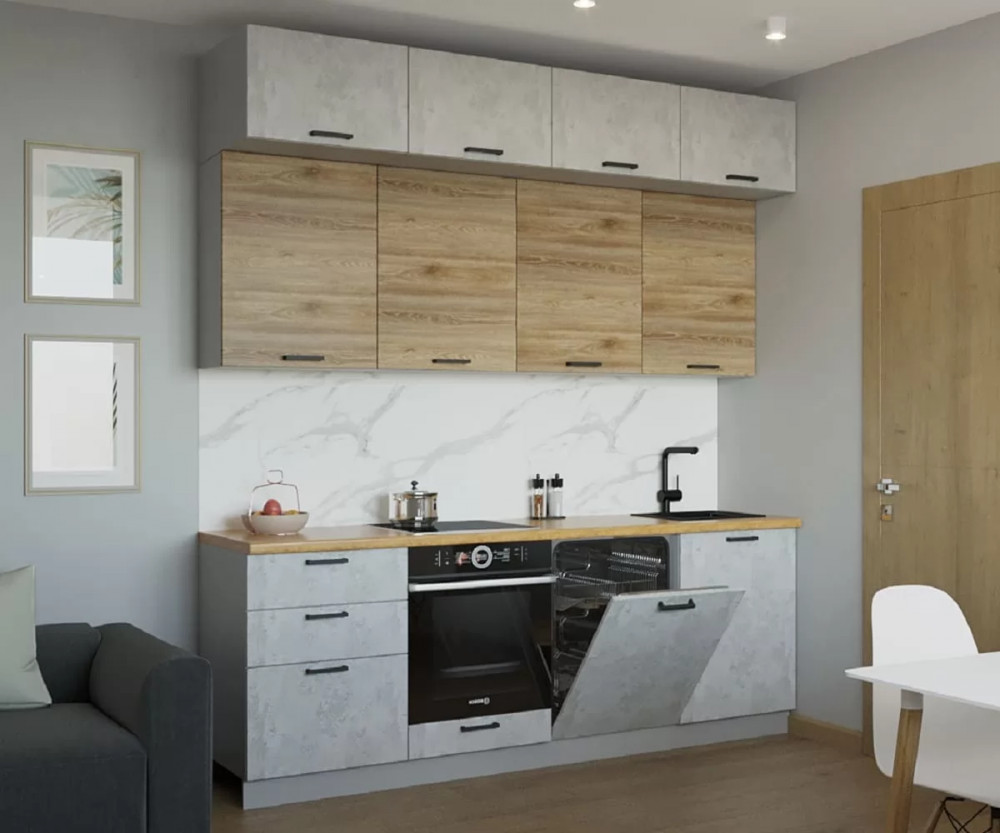 Кухонный прямой гарнитур арт.33 ЛОФТ, 2400 мм, Рустик натур/Бетон светлый в Тюмени