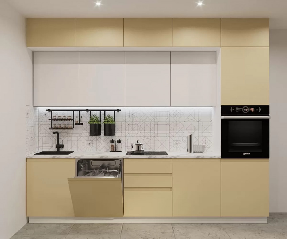 Кухонный прямой гарнитур арт.52, 3000 мм, Лайн/Стамбул/Тальк в Тюмени
