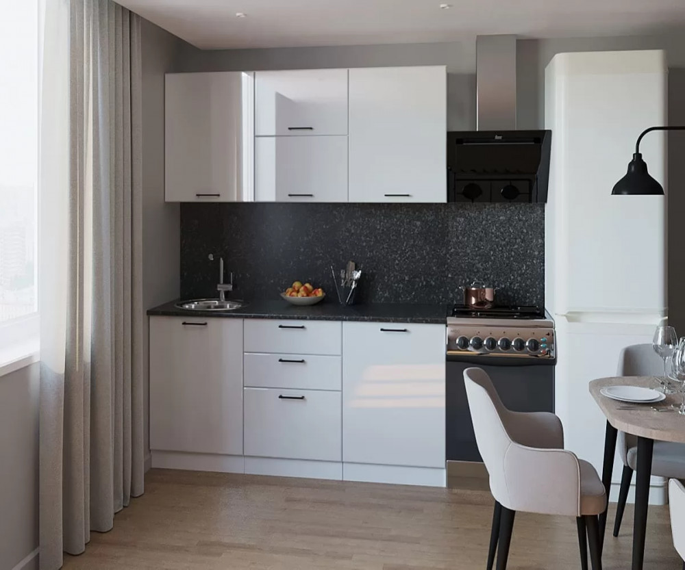 Кухонный прямой гарнитур арт.9, 1800 мм, Белый глянец в Тюмени