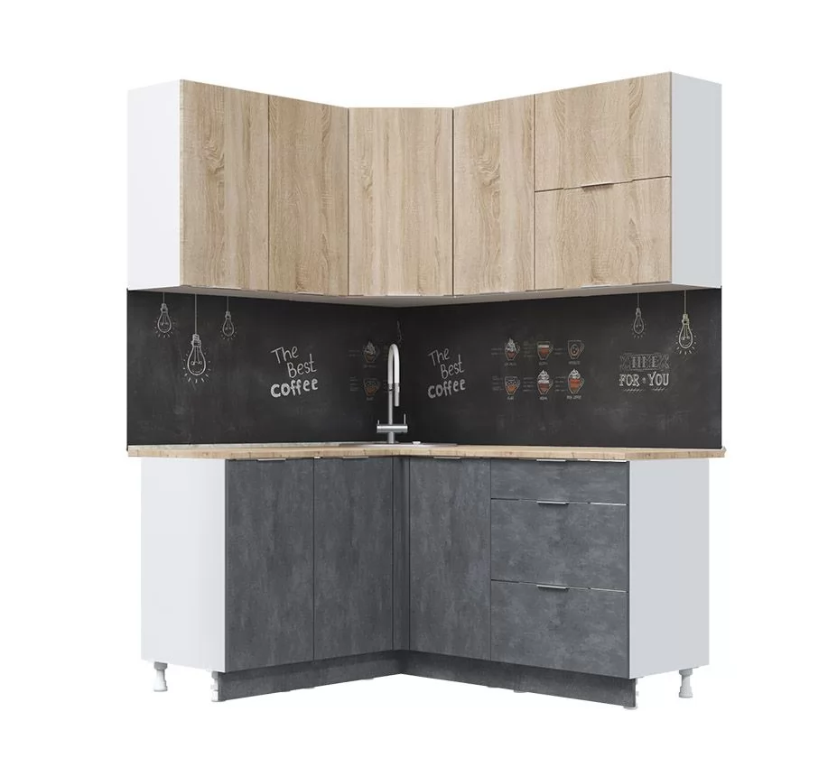 Кух. гарнитур Асти-дуб сонома угловой 1.4*1.6 м, белый/ дуб сонома/ бетон темный/ ПФ дуб бунратти (б/с 800) в Тюмени