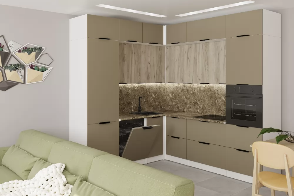 Мойки, смесители, посудосушители, варочные панели, духовые шкафы, плиты, вытяжки в комплекты гарнитуров не входят.