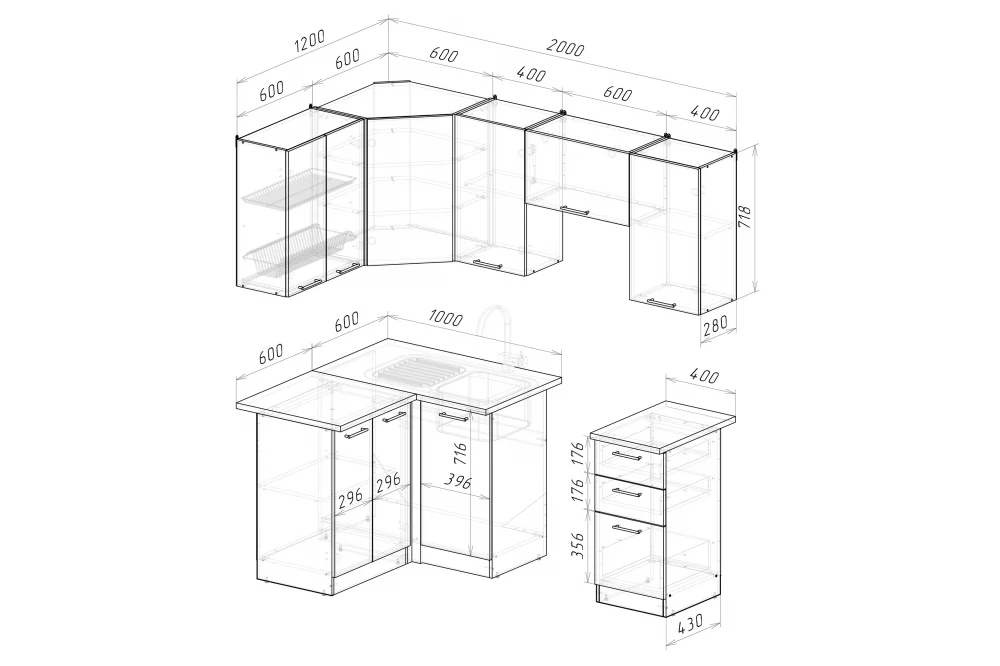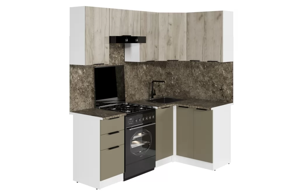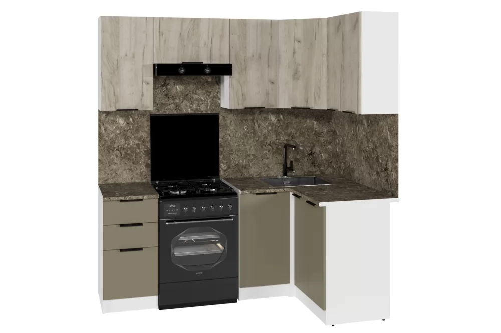 Мойки, смесители, посудосушители, варочные панели, духовые шкафы, плиты, вытяжки в комплекты гарнитуров не входят.