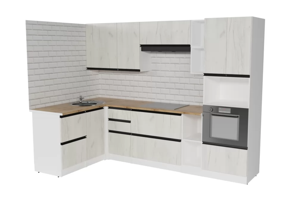 Готовые угловые кухни прекрасно экономят место, увеличивая рабочую зону. Если у вас квадратная или прямоугольная кухня, то угловая планировка кухни позволит рассмотреть множество вариаций размещения холодильника, микроволновки, посудомоечной машины и крупной бытовой техники. Выбирайте угловую кухню от производителя, если вам требуется много места для хранения, комната является проходной и нужна большая рабочая зона.
