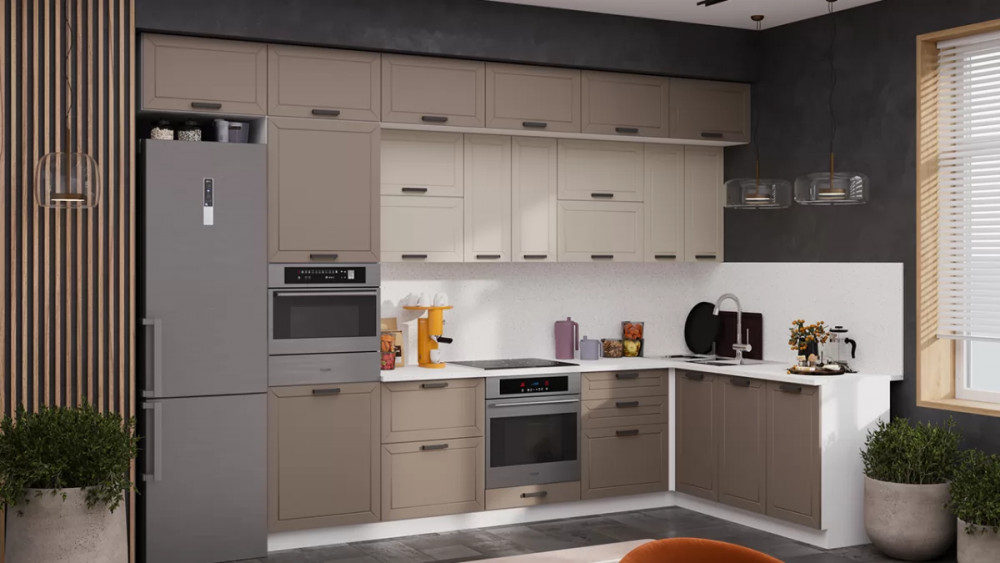 Кухонный гарнитур «Лорас» №4 Белый, Холст брюле, Холст латте в Тюмени