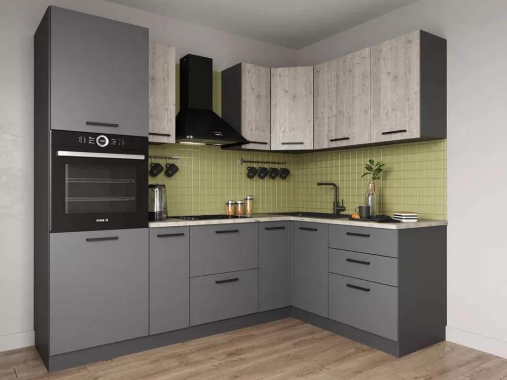 - Столешницы цельные со скруглением по переднему краю, пластиковым покрытием и силиконовый каплесборник (защищает фасады нижних модулей от попадания влаги и разбухания);