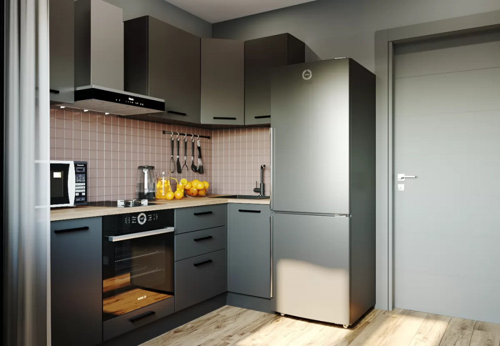Кухонный гарнитур угловой Антрацит 2200х1000 столешница 26 мм в Тюмени