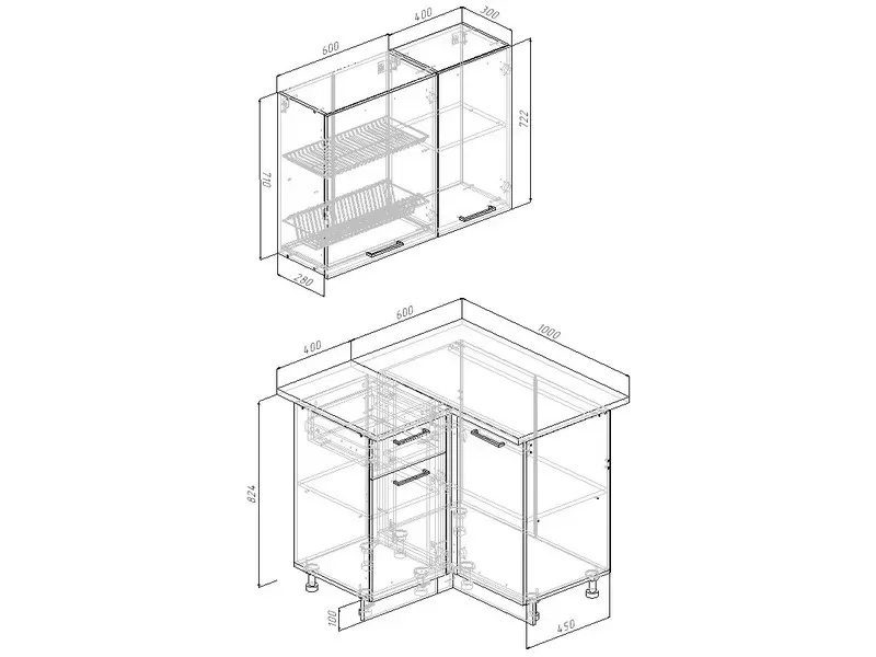 Корпус нижний 1000х470х824 МН100 угловой с полкой 1шт