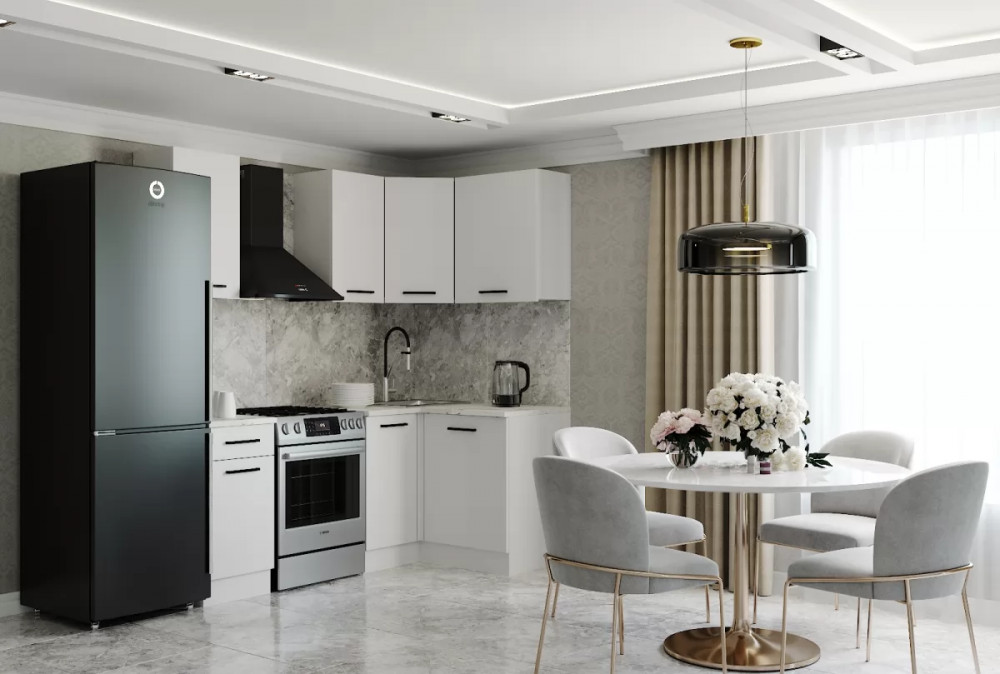 Кухонный гарнитур угловой Жемчуг 2000х1200 столешница 38 мм в Тюмени