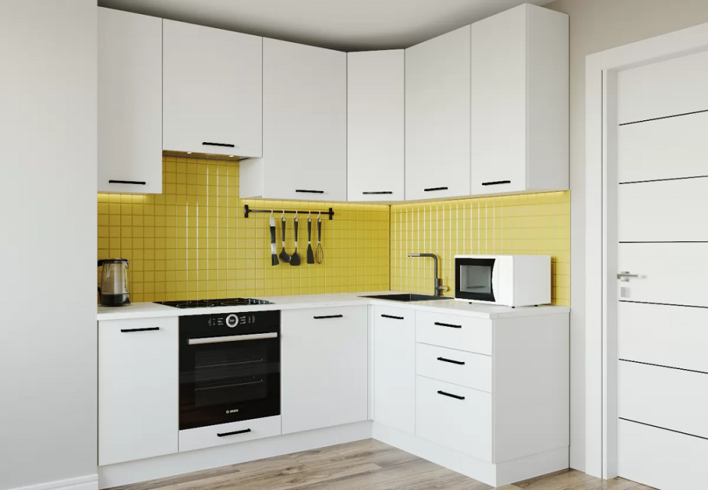 - Столешницы цельные со скруглением по переднему краю, пластиковым покрытием и силиконовый каплесборник (защищает фасады нижних модулей от попадания влаги и разбухания);