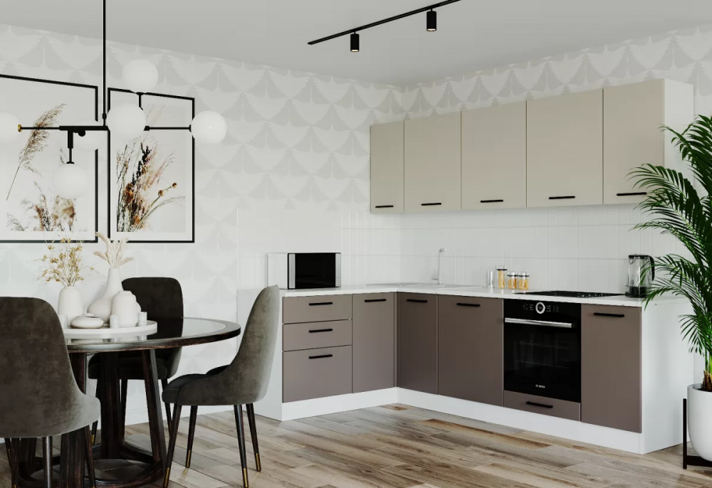 Кухонный гарнитур угловой Латте 2600х1600 столешница 26 мм в Тюмени