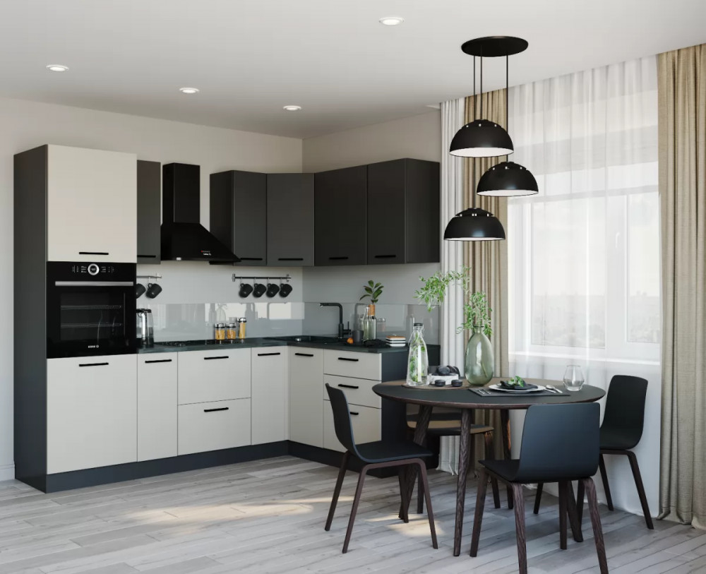 - Столешницы цельные со скруглением по переднему краю, пластиковым покрытием и силиконовый каплесборник (защищает фасады нижних модулей от попадания влаги и разбухания);