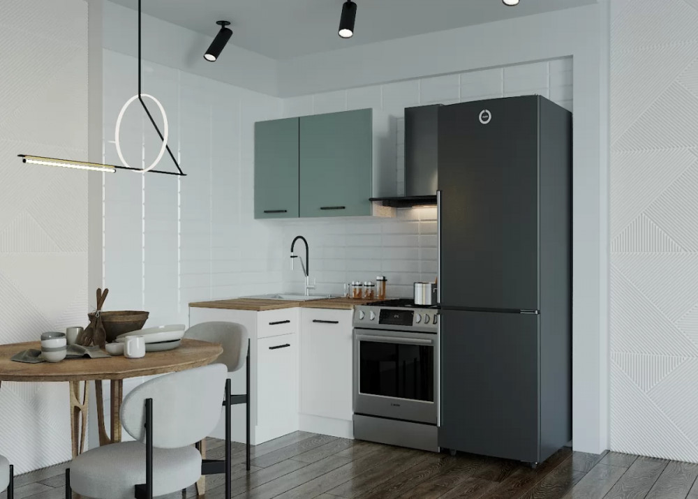 - Столешницы цельные со скруглением по переднему краю, пластиковым покрытием и силиконовый каплесборник (защищает фасады нижних модулей от попадания влаги и разбухания);