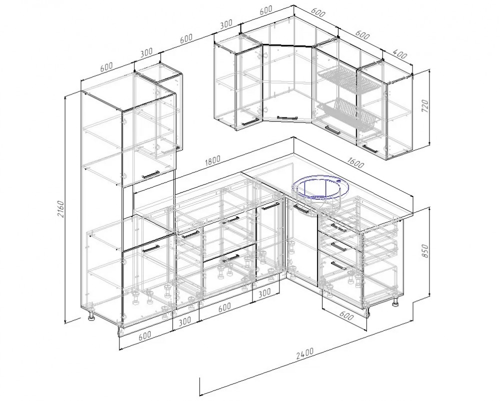 Кухонный гарнитур угловой Шампань 2400x1600 столешница 38 мм в Тюмени