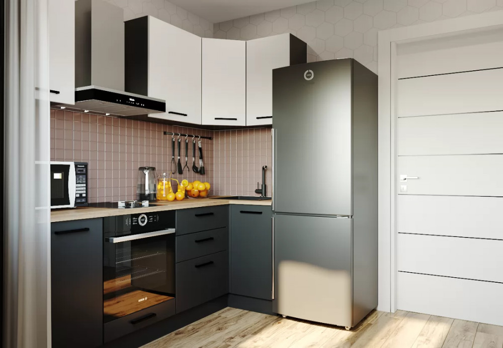 - Столешницы цельные со скруглением по переднему краю, пластиковым покрытием и силиконовый каплесборник (защищает фасады нижних модулей от попадания влаги и разбухания);