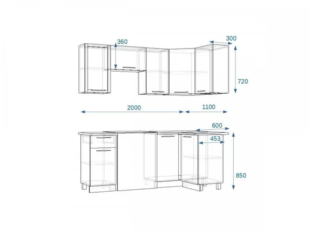 Кухонная мойка, стеновая панель, посудосушитель, цоколь, планки для столешницы в комплект не входят.
