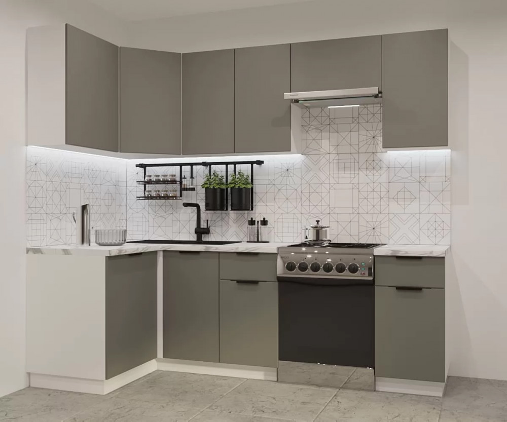 Кухонный угловой гарнитур арт.11, 1200x2400 мм, Фаска/Обсидиан в Тюмени