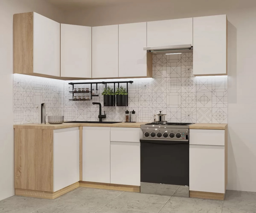 Кухонный угловой гарнитур арт.29, 1200x2400 мм, Лайн/Тальк в Тюмени