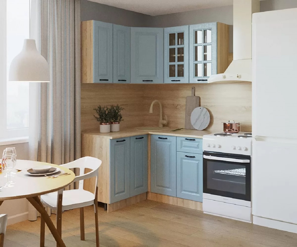 Кухонный угловой гарнитур арт.6, 1200x1400 мм, Роял Вуд Голубой/Вегас в Тюмени