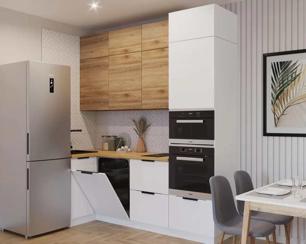 Кухонный угловой гарнитур арт.7, 1000x2400 мм, Тальк/Рустик соломенный в Тюмени