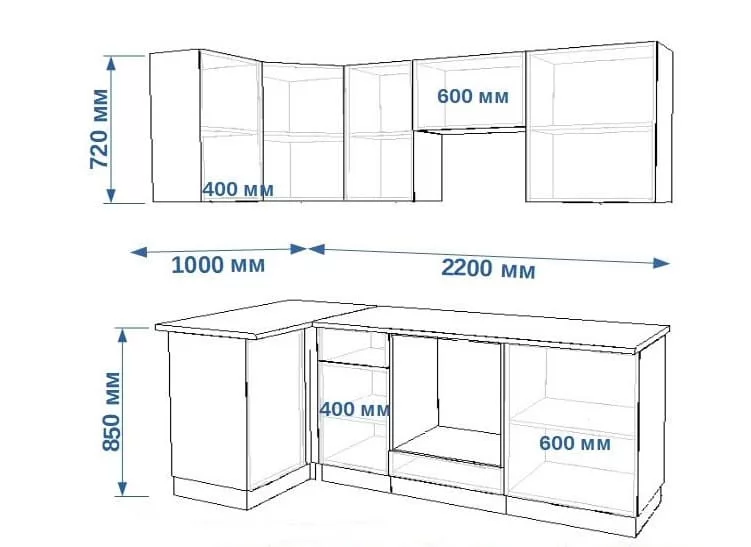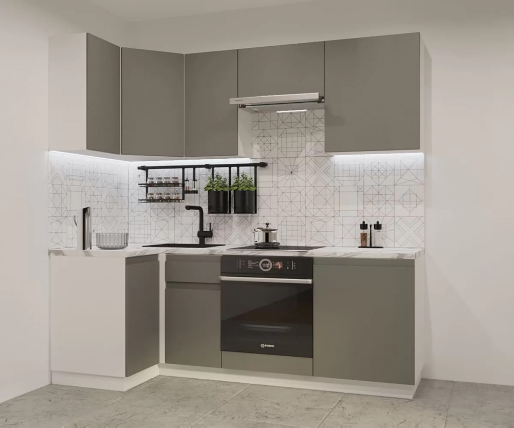 Кухонный угловой гарнитур арт.8, 1000x2200 мм, Лайн/Обсидиан в Тюмени