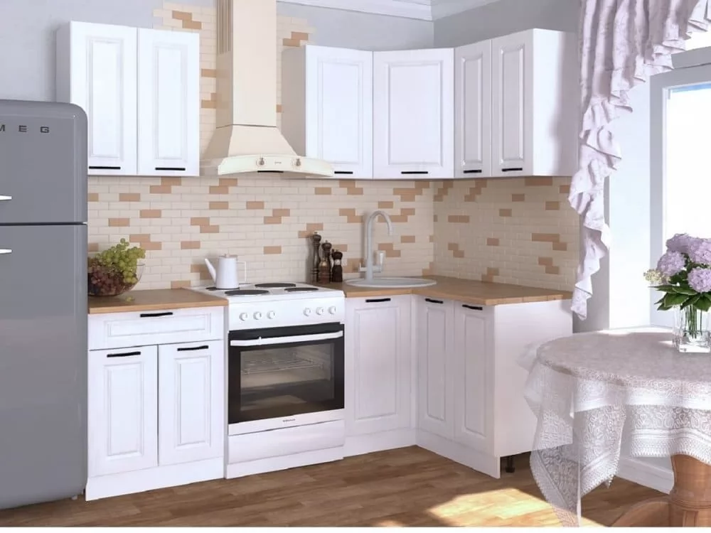 Кухонный угловой гарнитур арт.8, 1600x1200 мм, Белый/Вегас в Тюмени