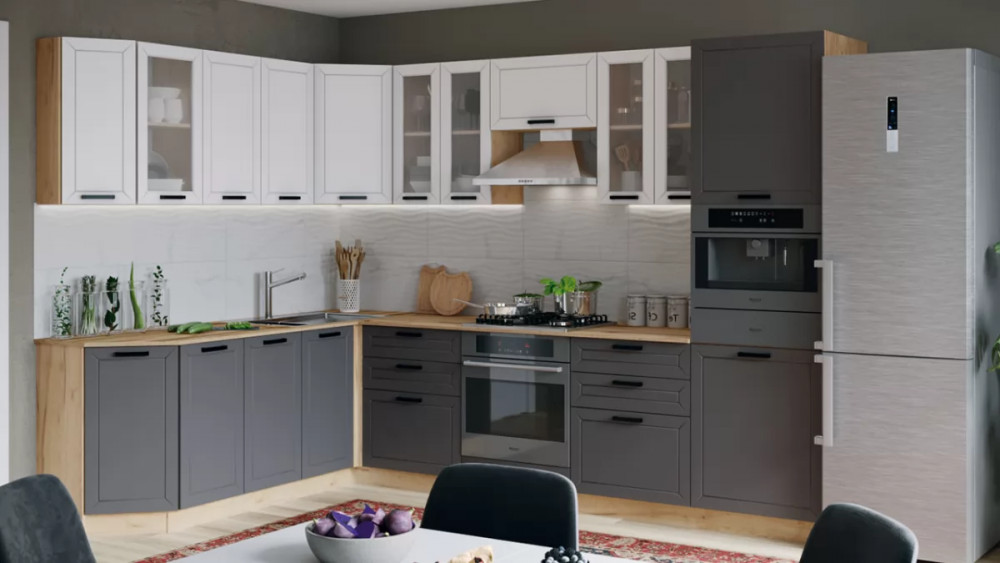 Модульная кухня «Лорас» Дуб крафт золотой/Холст белый/Холст вулкан в Тюмени