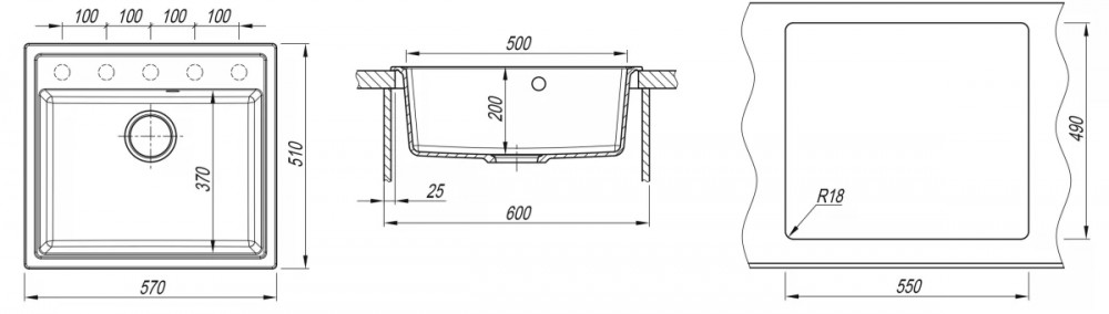Ширина мойки, мм: 570