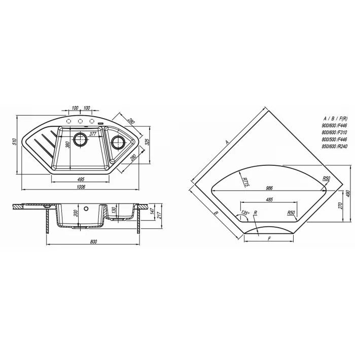 | Размер | 1005*510*h=217/130 мм |