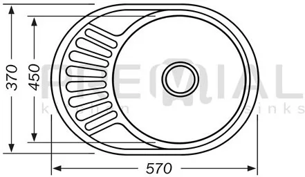 Модель PL5745 — овальная врезная мойка с чашей 37 см и ребристым крылом (реверсивная модель). Глубина чаши 18см. Мойка со сливным отверстием 3 ½″ укомплектована выпуск-сливной «корзинкой» с решеткой 114 мм из нержавеющей стали с затвором и резьбой 11/2″. В комплект фурнитуры входит также белый бутылочный сифон из АБС-сополимера, гофра с переливом, уплотнитель и монтажные клипсы для крепления мойки к столешнице. Минимальная база для установки — 55х43 см.