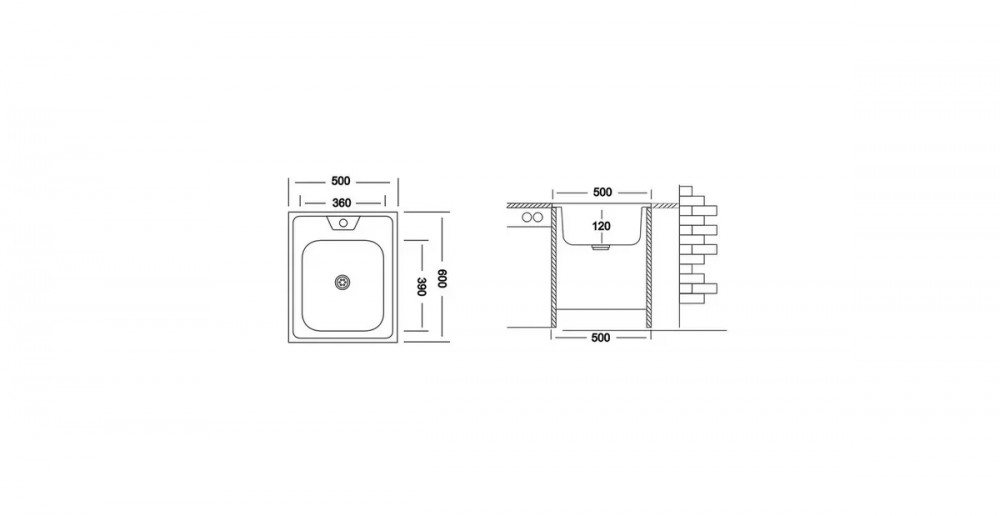 Мойка ECO 500.600 произведена из нержавеющей стали AISI 430, имеет прямоугольную форму Размеры изделия 500*600 мм., с глубинной чаши в 120 мм. Диаметр сливного отверстия 1 1/2 или 60 мм. Поверхность - матовая, тип установки - накладная.