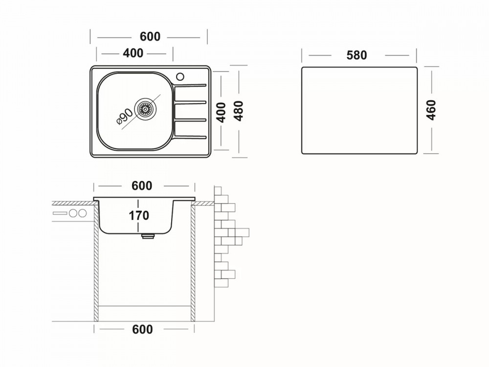 - Ширина мойки, мм - 600