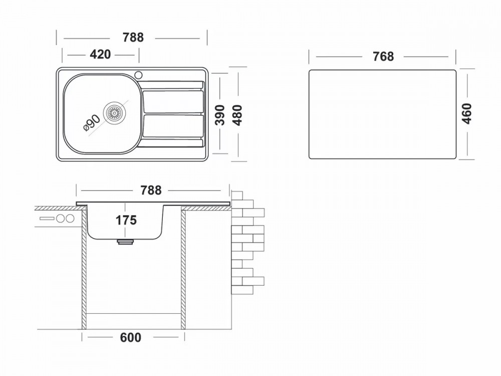 - Ширина мойки, мм - 788