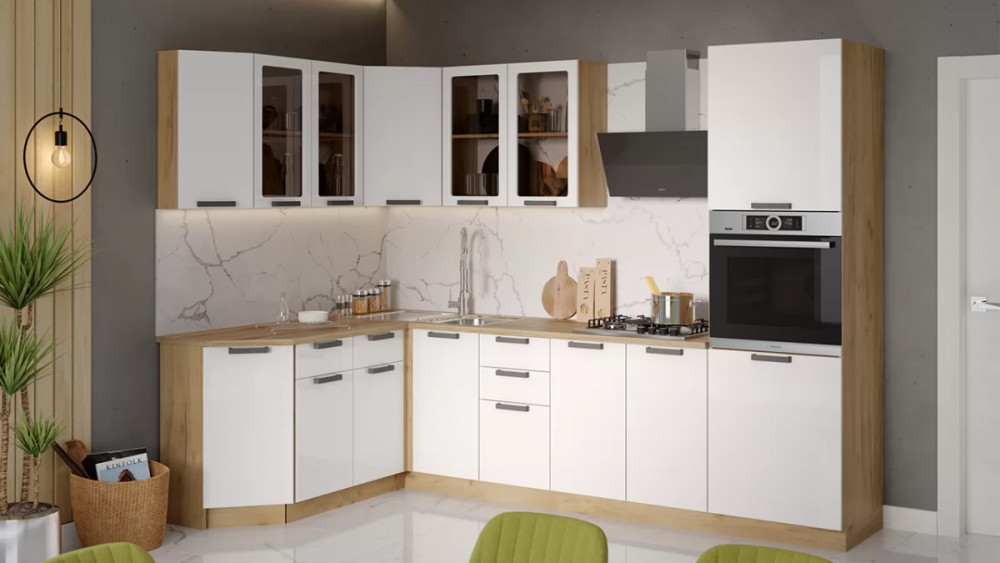 Модульная кухня «Детройт» Дуб крафт золотой/Белый глянец в Тюмени
